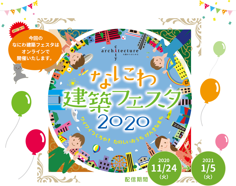 なにわ建築フェスタ 今回のなにわ建築フェスタはオンラインで開催いたします。2020.11.24(火)~2021.1.5(火)